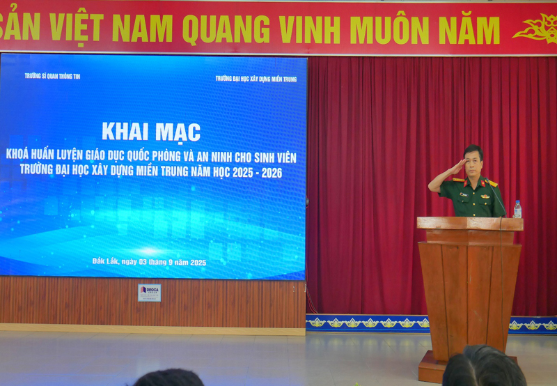 Ngày 03/9/2025, Trường Đại học Xây dựng Miền Trung (MUCE) phối hợp cùng Trung tâm Giáo dục Quốc phòng và An ninh (GDQP&AN) thuộc Trường Sĩ quan Thông tin tổ chức khai mạc khoá huấn luyện GDQP&AN cho 435 sinh viên theo Kế hoạch số 3989/KH-TTQPAN ngày 22 tháng 8 năm 2025.