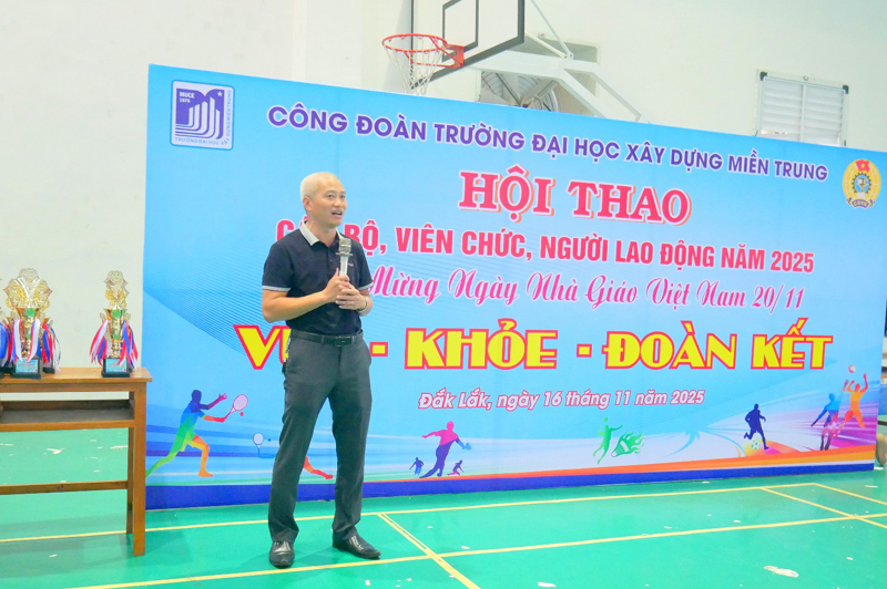 Ngày 15 & 16/11/2025, Công đoàn Trường Đại học Xây dựng Miền Trung (MUCE) đã tổ chức Hội thao Cán bộ - viên chức, người lao động năm 2025 thu hút hơn 200 cán bộ, viên chức, người lao động là vận động viên, cổ động viên trong toàn trường tham gia thi đấu ở 4 bộ môn. Đây là hoạt động thường niên nhằm chào mừng kỉ niệm 43 năm ngày Nhà giáo Việt Nam (20/11/1982 - 20/11/2025) và là dịp để công đoàn viên toàn trường cùng nhau cháy hết mình, lan tỏa tinh thần đoàn kết.