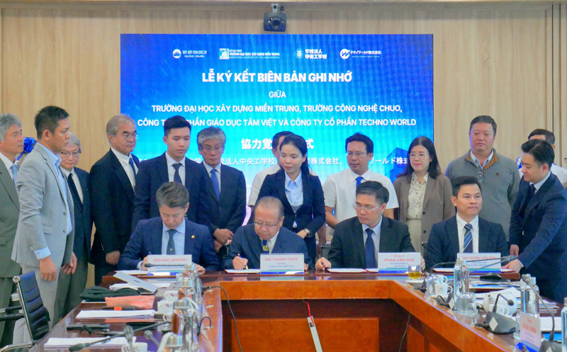 LỄ KÝ KẾT BIÊN BẢN GHI NHỚ HỢP TÁC (MOU) GIỮA TRƯỜNG ĐẠI HỌC XÂY DỰNG MIỀN TRUNG VỚI TRƯỜNG CÔNG NGHỆ CHUO – NHẬT BẢN, CÔNG TY CỔ PHẦN TECHNO WORLD – NHẬT BẢN VÀ TÂM VIỆT EDUCATION