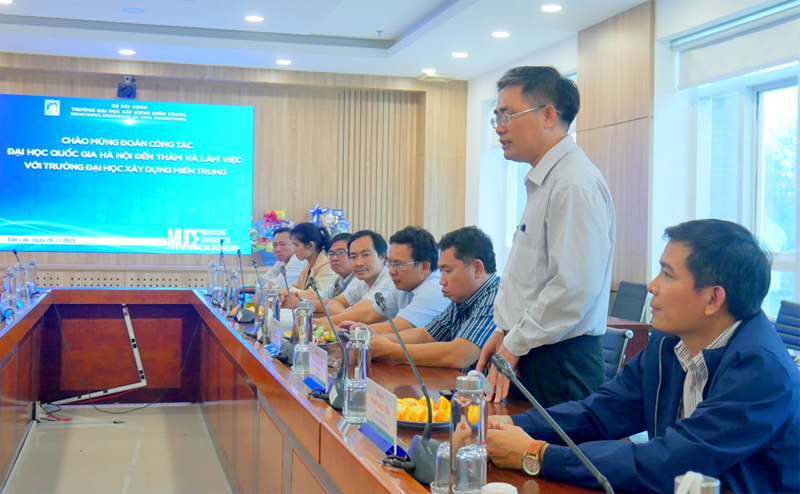 Ngày 26/11/2025, Trường Đại học Xây dựng Miền Trung (MUCE) hân hạnh chào đón đoàn công tác Đại học Quốc gia Hà Nội (ĐHQGHN) do PGS.TS. Hoàng Minh Sơn – Bí thư Đảng ủy, Chủ tịch Hội đồng, Giám đốc ĐHQGHN, Nguyên Thứ trưởng Bộ GDĐT làm Trưởng đoàn đã đến thăm, làm việc tại MUCE.
