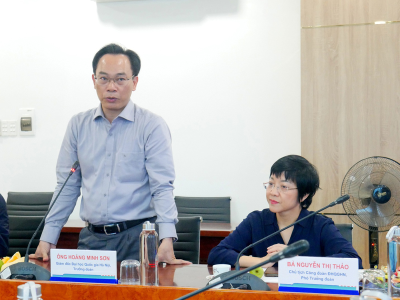PGS.TS. Hoàng Minh Sơn – Bí thư Đảng ủy, Chủ tịch Hội đồng, Giám đốc ĐHQGHN, Nguyên Thứ trưởng Bộ GDĐT chia sẻ rằng ĐHQGHN sẵn sàng đồng hành và hỗ trợ MUCE trong công tác mở ngành đào tạo, công tác nghiên cứu khoa học; đặc biệt là các nghiên cứu khoa học công nghệ tập trung vào các lĩnh vực thế mạnh của MUCE nhằm mục đích góp phần chuyển giao, hỗ trợ phát triển khoa học công nghệ tại địa phương.