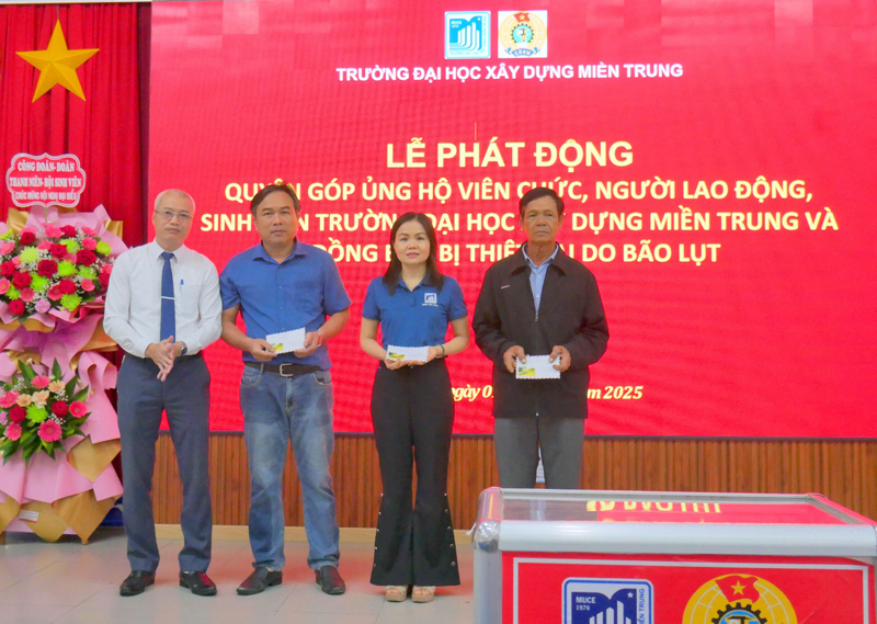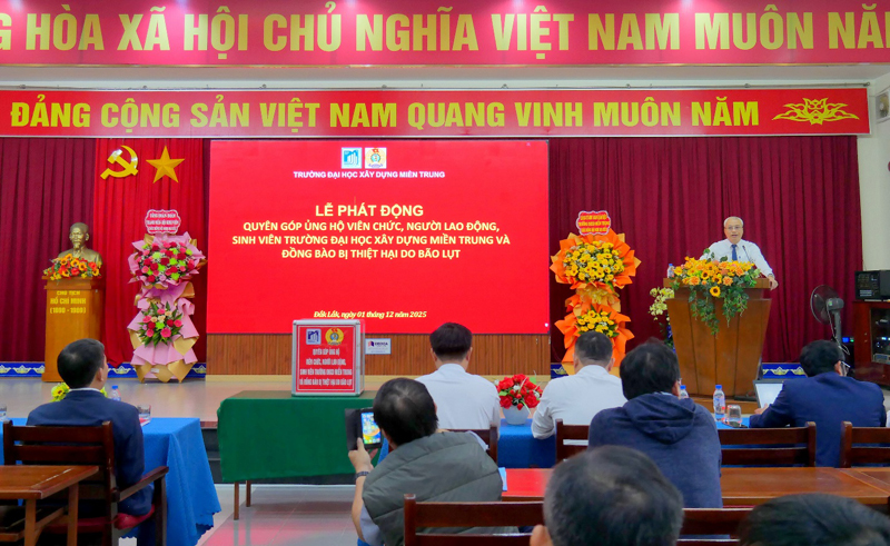 Phát huy truyền thống tốt đẹp “tương thân, tương ái” của dân tộc Việt Nam, sáng ngày 01/12/2025, đồng thời tại 2 cơ sở 195 Hà Huy Tập, Phường Bình Kiến, Đắk Lắk và Phân hiệu Đà Nẵng; Trường Đại học Xây dựng Miền Trung (MUCE) phát động Lễ phát động quyên góp ủng hộ trực tiếp và đã nhận được sự ủng hộ từ rất đông cán bộ, viên chức, giảng viên, người lao động, sinh viên, cựu sinh viên, doanh nghiệp cùng các nhà hảo tâm. Tổng số tiền nhận được tính đến 8h00 ngày 01/12/2025 là gần 100 triệu đồng.