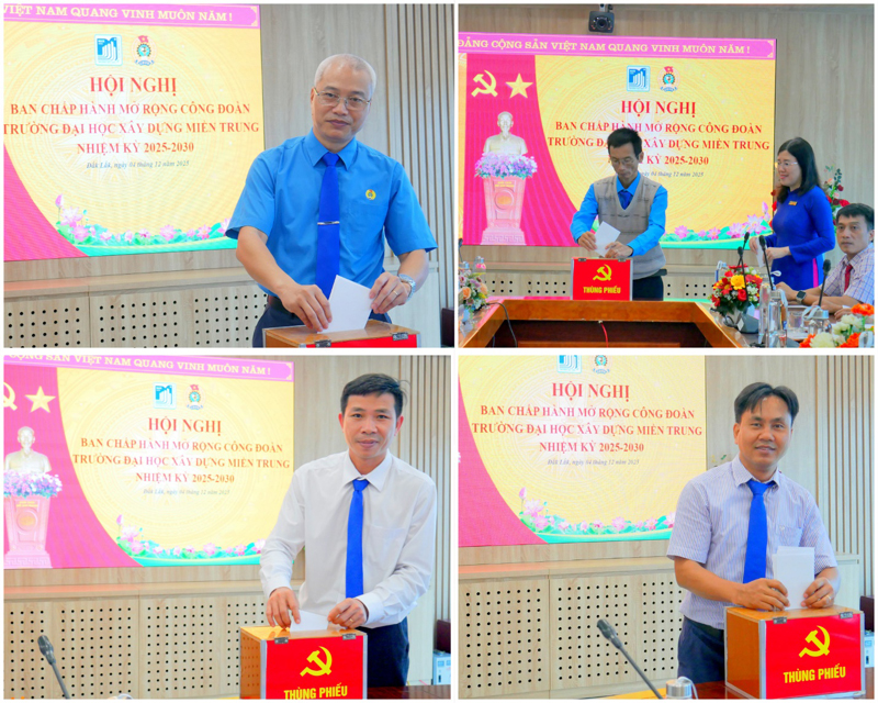 Ngày 04/12/2025, Trường Đại học Xây dựng Miền Trung (MUCE) long trọng tổ chức Hội nghị Ban chấp hành Công đoàn mở rộng nhiệm kỳ 2025-2030. Hội nghị với phương châm “Đoàn kết - Dân chủ - Kỷ cương - Đổi mới - Phát triển” được tổ chức để tổng kết nhiệm kỳ, đánh giá kết quả hoạt động, xây dựng phương hướng nhiệm vụ cho nhiệm kỳ mới, chuẩn bị cho đại hội công đoàn cấp trên, tham gia ý kiến vào các văn kiện, và kiến nghị về quyền lợi cho đoàn viên, người lao động đồng thời thực hiện sự lãnh đạo của Đảng ủy, phát huy trí tuệ và trách nhiệm của cán bộ - viên chức – người lao động (CB-VC-NLĐ) trong toàn trường.